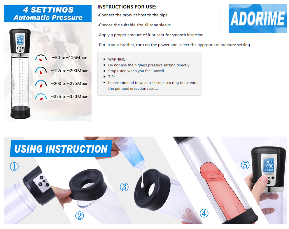 • Air pressure is generated in the tube to push the blood toward the cavernous. This will stimulate ereections and enlargement until reach the result you want. Make you more confident and perform better in sex. Enhance pleasure and prolong intimacy.