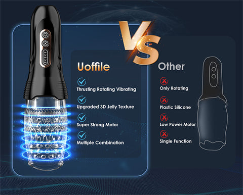 - Transparent Realistic TPE Material - Uoffile male masturbator is made of realistic TPE material with 3D textured synapses. The clear crystal premium soft silicone provides a visually pleasing sensation to experience the visual pleasure of stroking. The spiral pleats on the inner sleeve provides a more realistic feel along with the gripping beads to enhance your sexual stroking experience