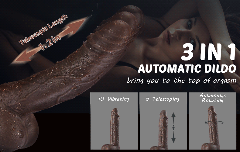 Bestvibe's big brown beast stands alone as an ultra-sized beacon of pleasure. It'll be hard to miss this mammoth cock. whose authentic shaft and balls are set atop a sucker base. Combines with rotating. vibrating and thrusting working at the same time by one button. which will carry the stimulating climax all over your body! Telescopic length up to 1.2'!!! The high-speed telescopic dildo can hit the spots and never get tired. Such is the heft of this girthy toy that its head bows under its own weight into a pleasing curve. Light tapering assists insertion without compromising on stimulation. while raised veins and a ridge around the head ensure you'll love every moment. Grab those big balls for use as a handle. or plant the sucker base onto any smooth surface and enjoy your toy pumping two hands to the heavens.