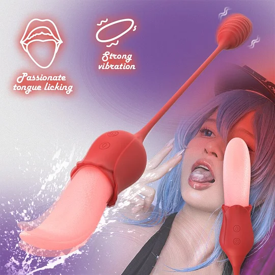 2 in 1 This rose-shaped sex toy is not only a tongue-licking toy but also connected with a vibrating egg to stimulate your g-spot. the string is also easy to pull and remove. and a period of use is good for pelvic floor muscles to gain better bladder control. The tongue is also insertable.