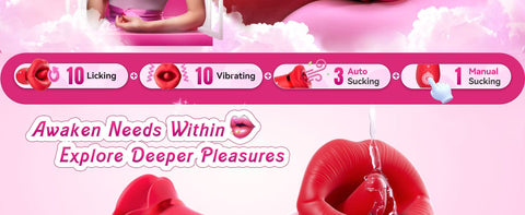 - [EMBARK ON A CAPTIVATING SENSORY JOURNEY] 4-IN-1 Sucking & Licking Mouth Vibrator – 'Lips' with a unique combination of 3 auto suction modes, 1 manual suction, provides a 360° flexible tongue, along with 10 licking and vibrating modes. Explore varying levels of suction and tongue-licking intensity for pure pleasure. Crafted stimulator for anal toys, clitoris nipple toys g-spot vibrator, etc. Ideal foreplay sex toys for couples women, and female partners, enhancing happiness and intimacy.