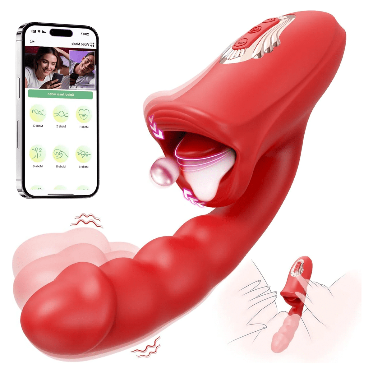 Lifelike Mouth & Tongue Design:Features a lifelike lip shape. The kiss - tongue reaches precisely, with multiple licking/kissing patterns for continuous stimulation.