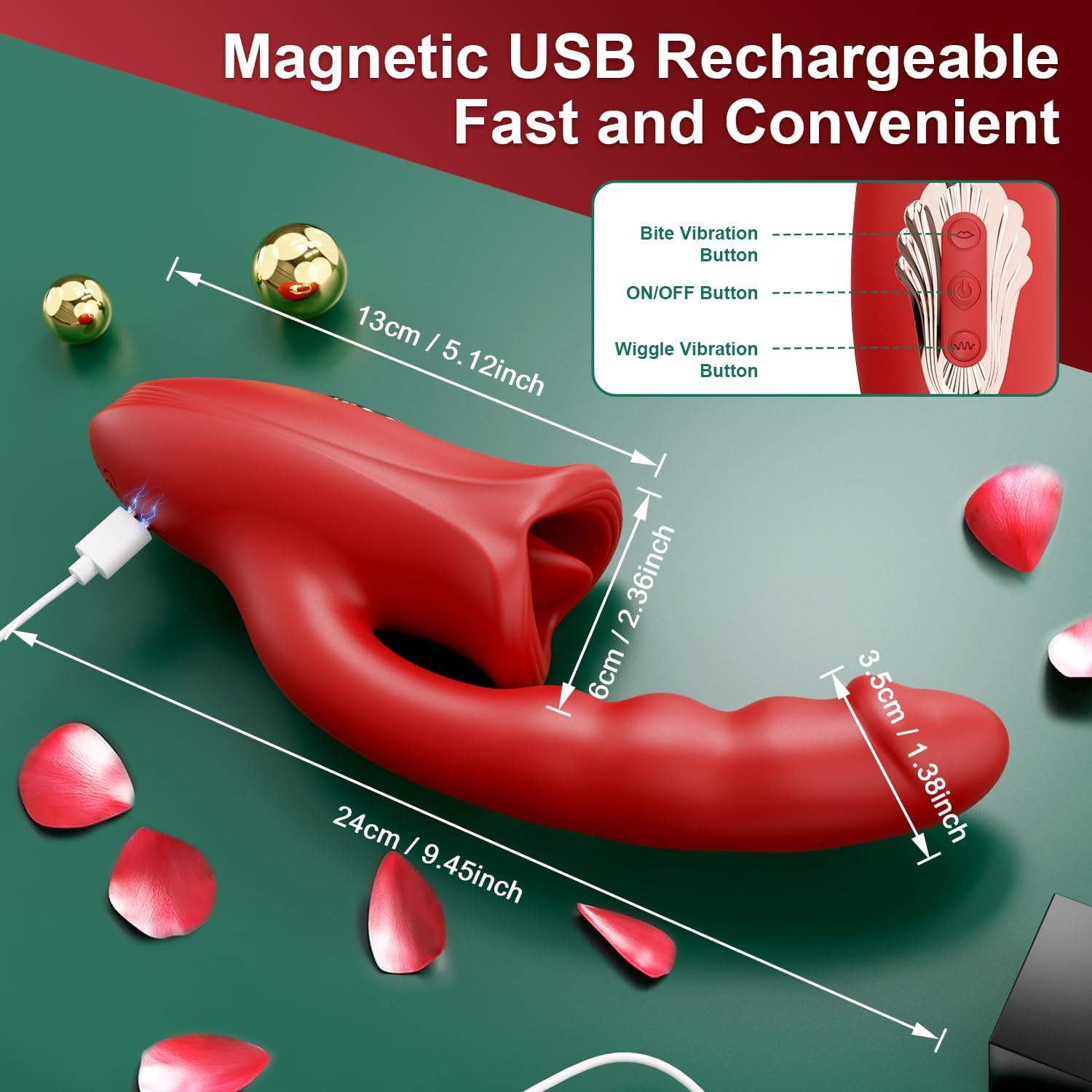 5 - in - 1 Rose Muncher G Spot Vibrator:This vibrator combines tongue - licking, biting, finger - massaging, and vibration, providing a new and exciting sensory experience. With 9 licking/kissing and 9 finger - flicking/vibration modes, it targets every nerve.